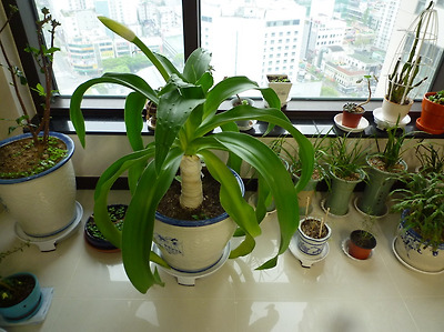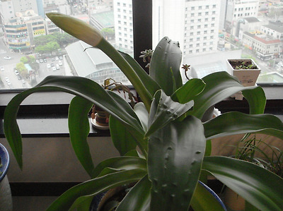 줄기가 굵어지더니 드디어 꽃대를 내민다)