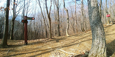 정상과 하산 갈림길 조리대길