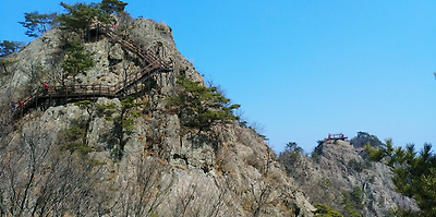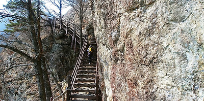 계단에서 보는 5봉 구름다리
