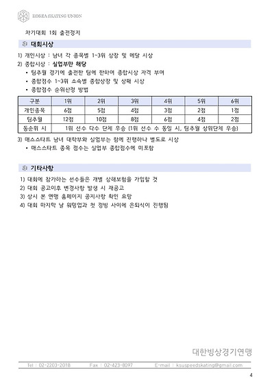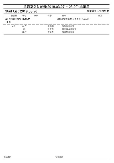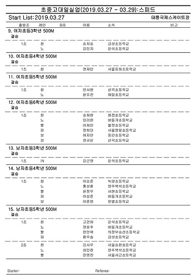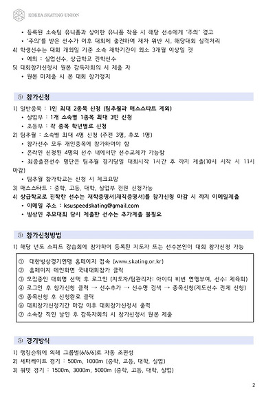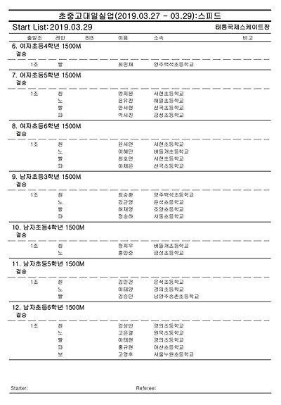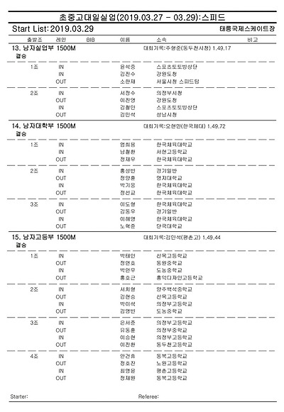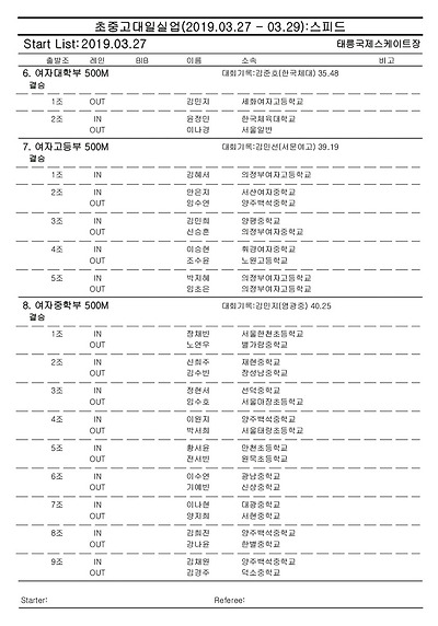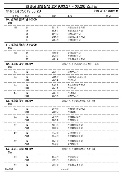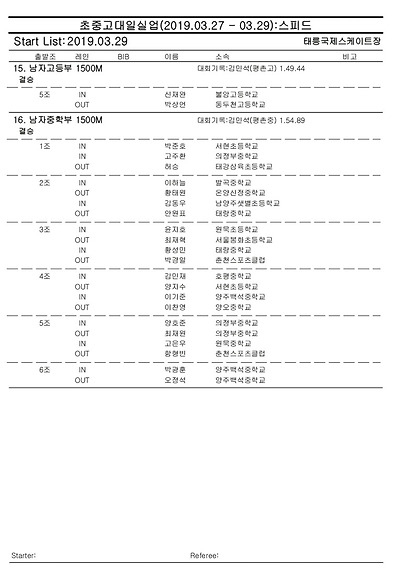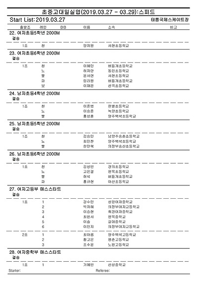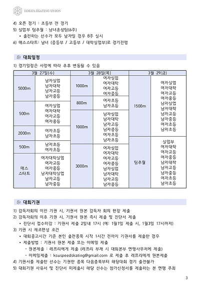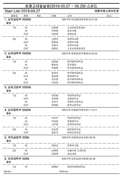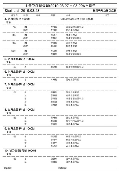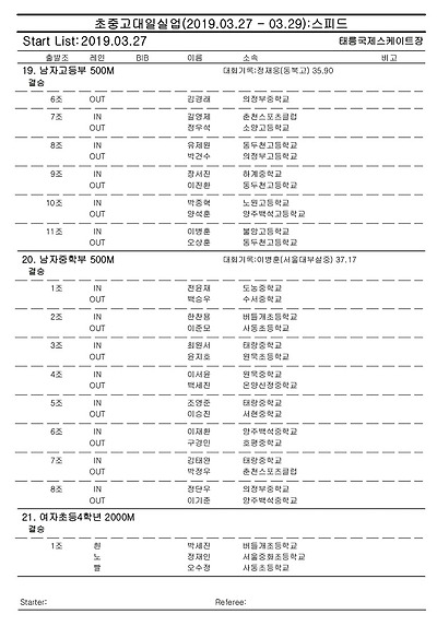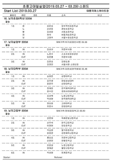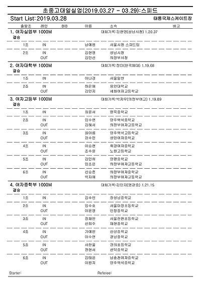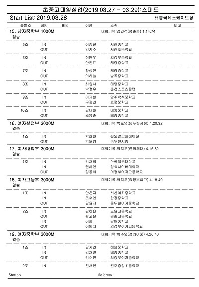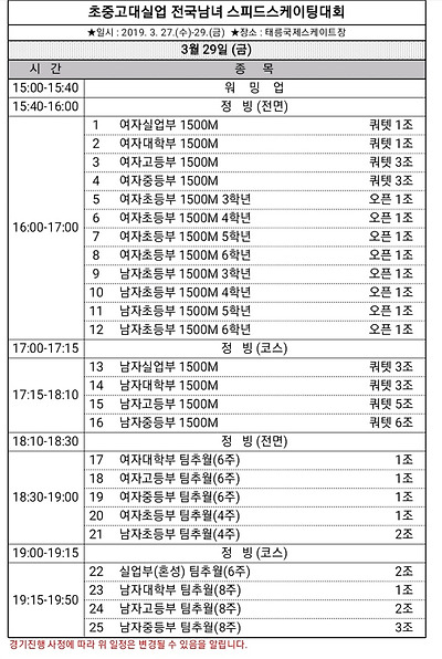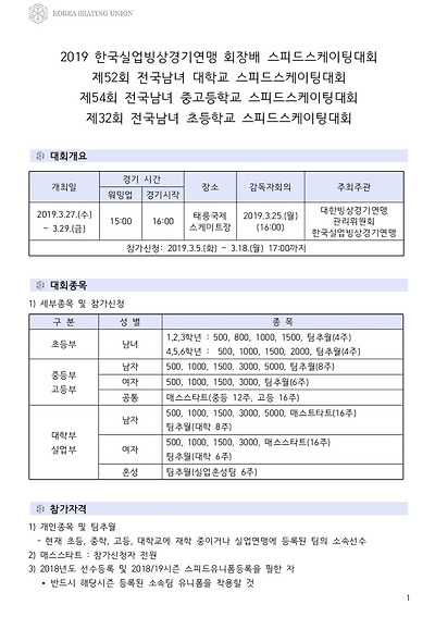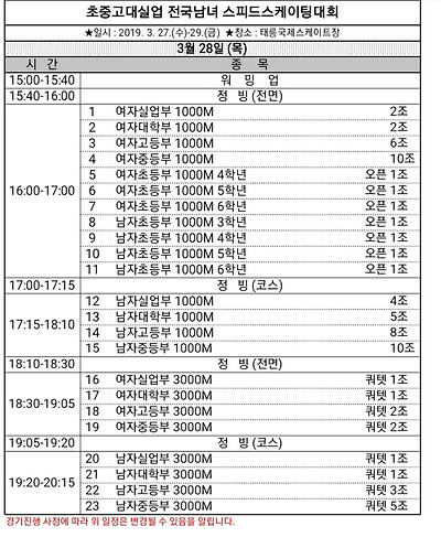 [스피드] 전국남녀 초중고대실 스피드스케이팅 대회 2019 공고 03/27~29 #태릉