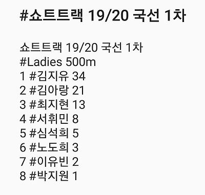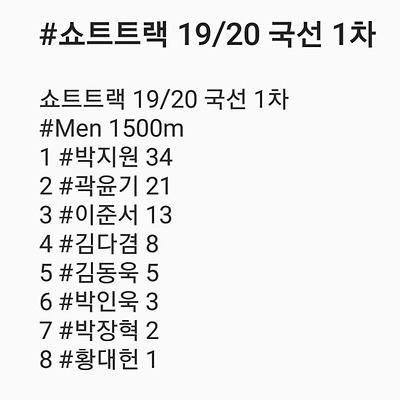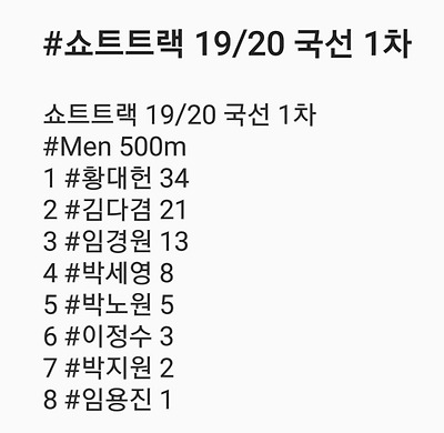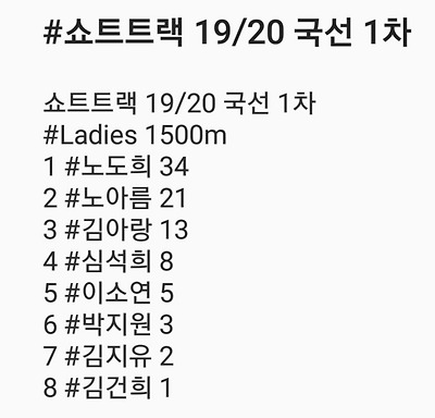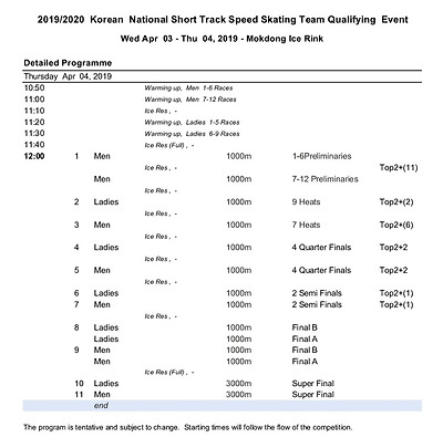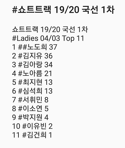 [쇼트트랙] 2019/20 쇼트트랙 국가대표 선발대회 2019 1차 04/03 결과 #목동