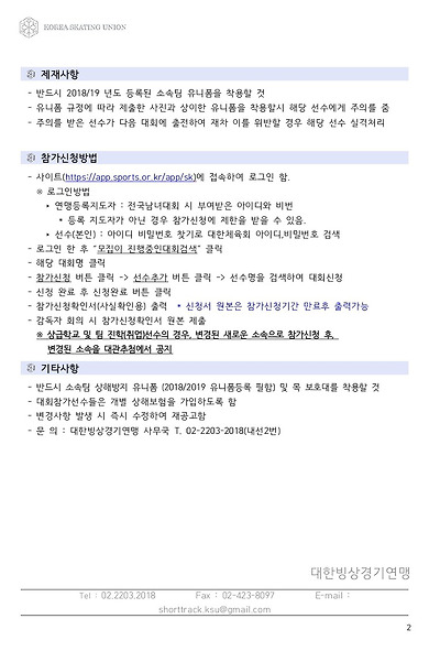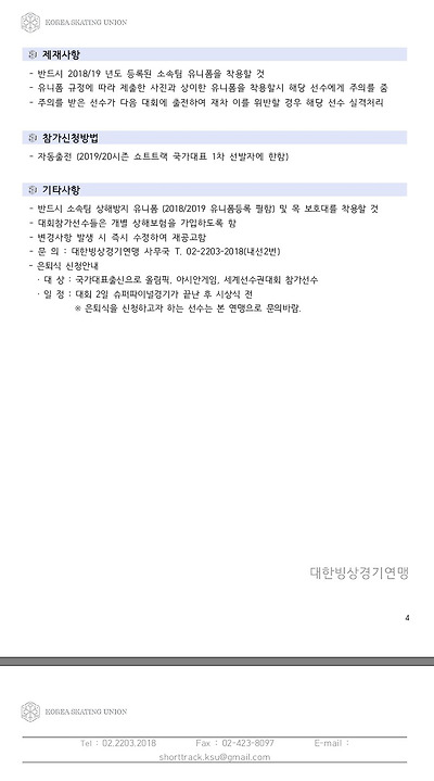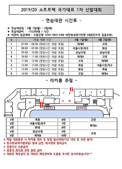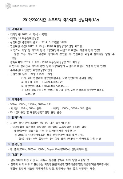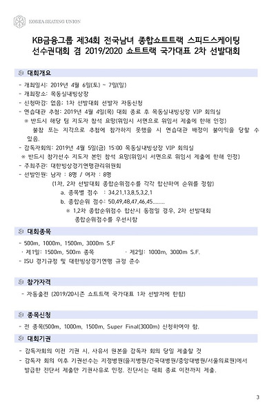 [쇼트트랙] 2019/20 시즌 쇼트트랙 국가대표 선발대회 2019 공지  #목동
