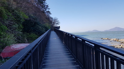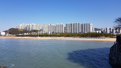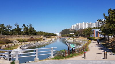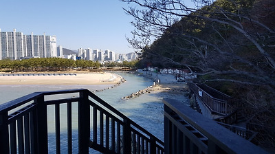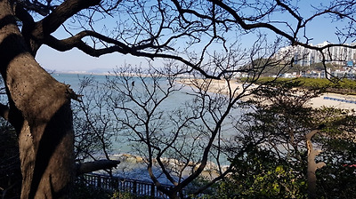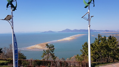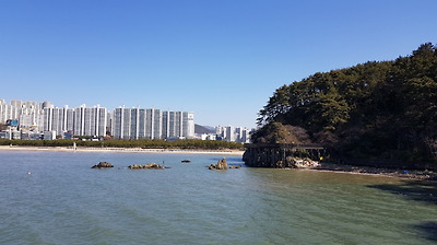 해수욕장과 분수대를 지나 큰길을 가로 질러 곧장 도로를 따라 올라간다