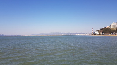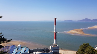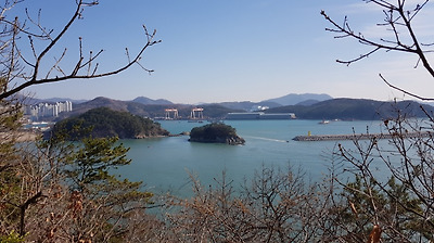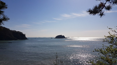 다대항 앞바다 솔섬과 건너편 두송반도 대선조선이 보인다