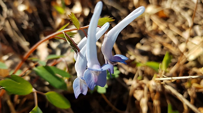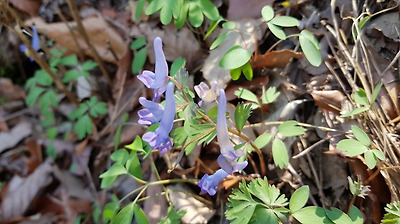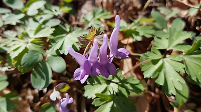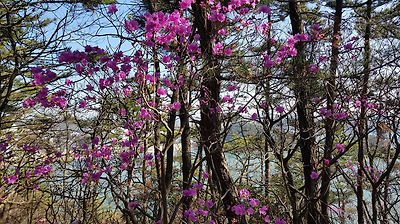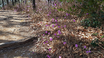 화손대로 오르는 경사길 진달래꽃이 피어 있다