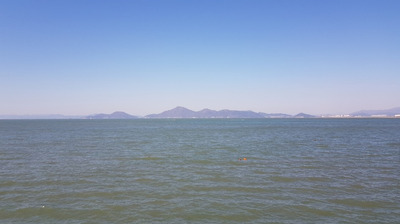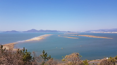 가덕도 뒤족으로 아스라히 보이는 거제도