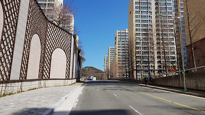 관리사무실 아래 좌측도로부터는 군시설로 출입이 통제되는길