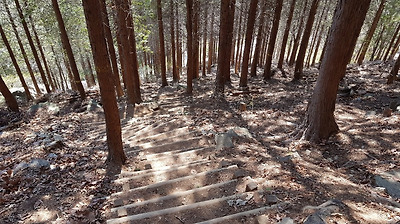 편백림계단을 내려오면