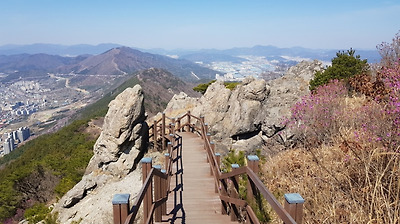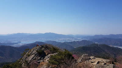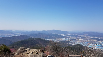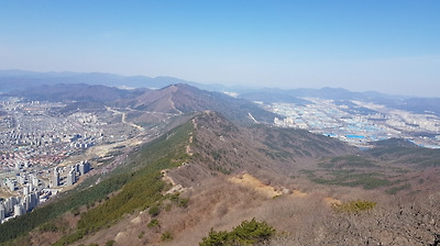 멀리 부산 금정산이 보인다