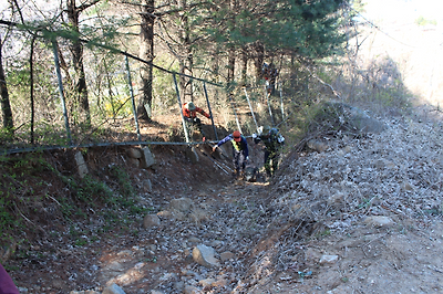 결국 철조망 통과를 해서 산길을 찾아 들어 간다