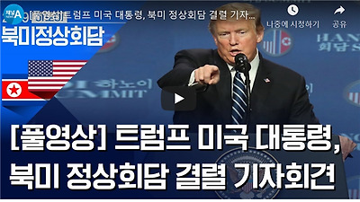 회담 결렬 후 트럼프 대통령은 28일 숙소인 JW메리어트 호텔에서 기자회견을 열어 합의문 서명에 실패한 이유에 대해 북한은 미국이 바라던