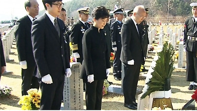 △천안함 묘역을 찾아 묵념을 하는 박근혜 대통령