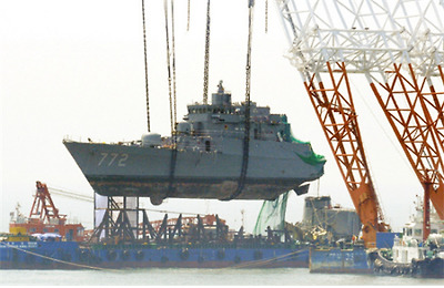 △북한 어뢰공격을 받아 파괴된 천안함 단면