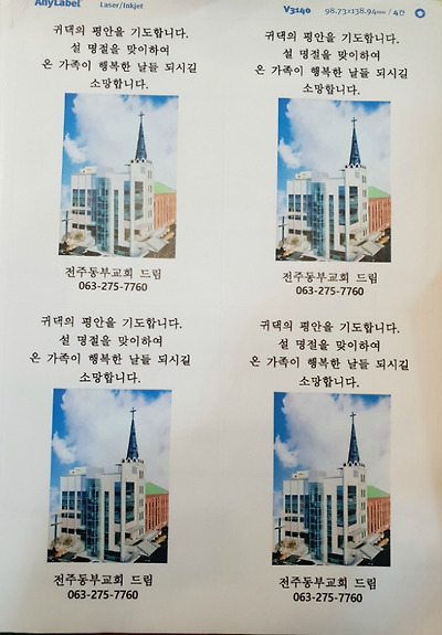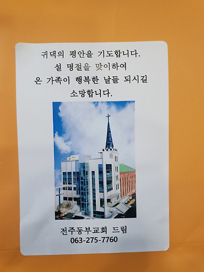 2019년 1월29일 화요일 전주동부교회에서는  교회 주변에 설 명절을 맞이하여 온 가족이  행복한 날들