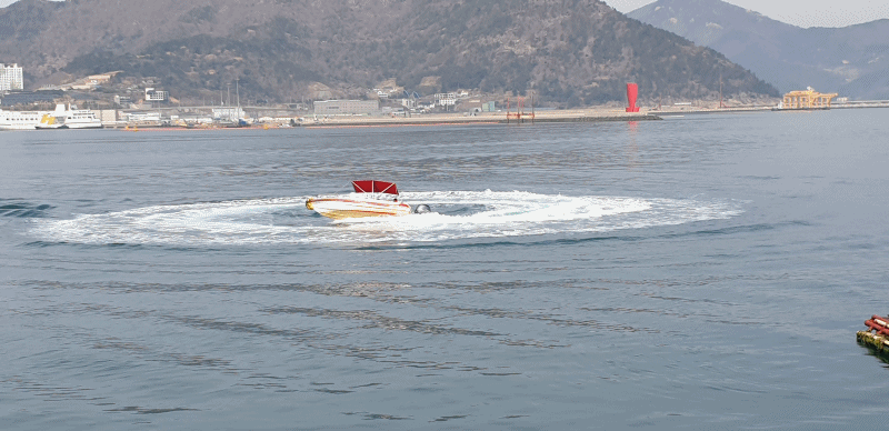 바다위에는 그림처럼 배 한 척 둥둥 떠 있다.