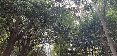 하늘을 가리고 있는 나무 잎 새들을 만난다. 햇빛에 반짝이는 싱그러움이 향일암에 대한 신비를