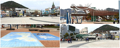 오동도 서쪽 방파제 입구로 갈라지는 산책로 길이 나오고 중앙광장으로 내려오면 거북선과 판옥선의