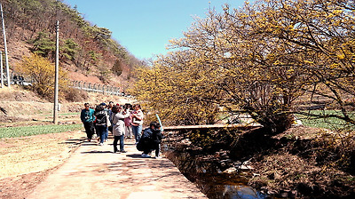 노란산수유 꽃들을 제대로 즐기려면 행사장을 지나 숲실마을까지