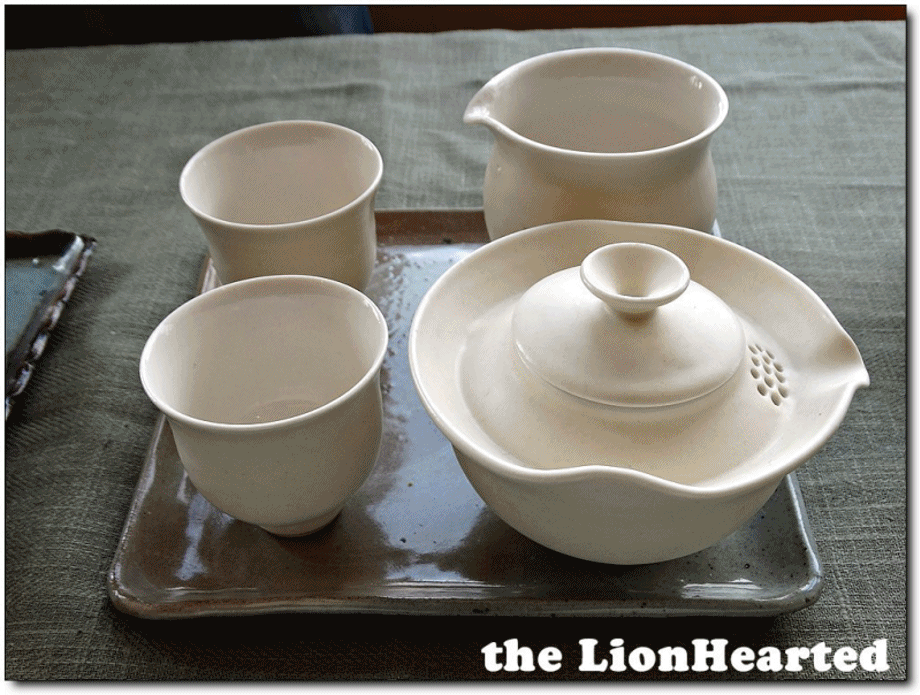휴고 여사장의 배려로 차 한 잔을 마시게 되었다, 원래 종이 컵에 따라 주는게 촬영을 의해 옆 공방에서 찻잔을 구매해 온 것 같다, 그러나 전시장 환경이 맞지 않는데가 싷혁도 딸려 수십 장을 찍은 후 겨우 골라 낸 사진이다,