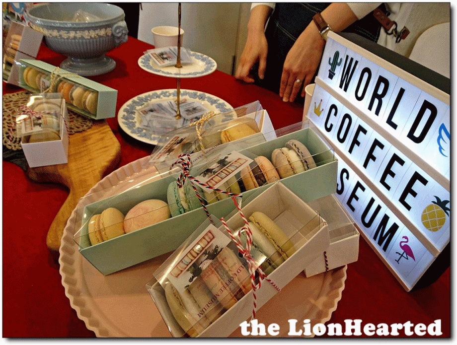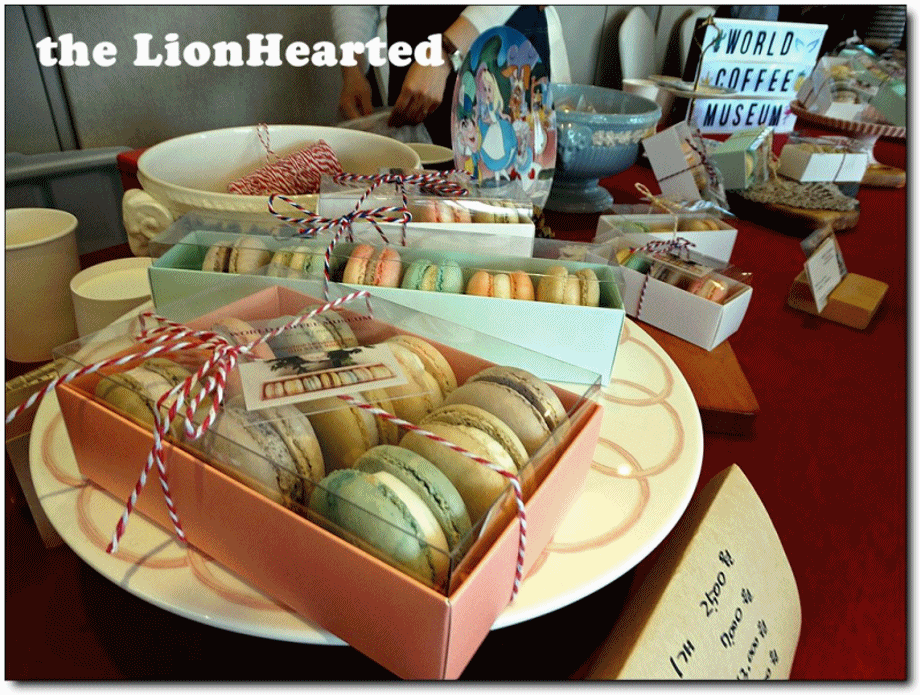 부산 전포동 현대오피스텔 위쪽에 위치한 부산커피박물관에서 "World Coffee Museum'이란 명칭으로 참여하면서 마카롱을 전시 판매하는 것 같다, 다른 곳에서 보기 힘든 형태의 마카롱이다, 당일 참석했던 [인간승리] 회원이 구매하여 나눠 먹었는데 달지 않고 맛있었던 기억이 난다,