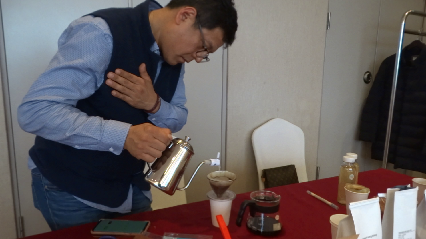 역시 커피를 좋아 하시는 부산맛집기행 [해초☆]특별회원이 주문한 후 드립하는 장면을 관심을 갖고 바라 보고 있다,