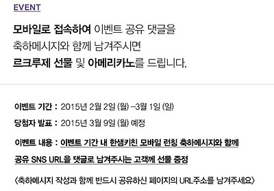 이벤트 기간 : 2015년 2월 2일(월) ~ 3월 1일(일)