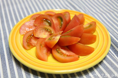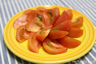 후식으로~~ 토마토를 썰어서 먹어봤는데