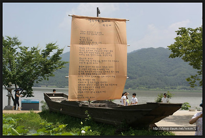 양수리로 오시게~라는 시가 적혀있는 돛단배도 한척 있어요~