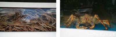 들어가는 입구 수족관에 게들이 가득차 있네요~ ㅎㅎ
