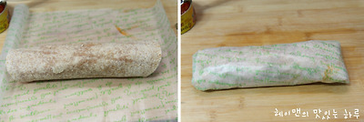 6. 돌돌 말은 또띠아롤을 유산지에 포장해 주세요~