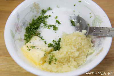 실온에 놔둔 버터와 설탕, 다진마늘, 파슬리가루를 넣고 잘 섞어주세요~
