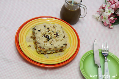 오늘은 식빵 대신 와플을 이용해서 인절미토스트를 만들어봤어요~ ^^