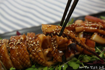 한마리는 오징어산적을 만들어 먹었답니다.