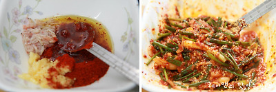 새우젓 1큰술, 다진마늘 1T, 들기름 2T, 고추가루 2T, 쪽파 3~4개, 통깨