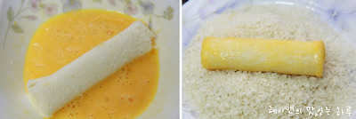 치즈를 만 식빵은 계란물을 입힌후