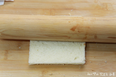 테두리를 자른 식빵은 홍두깨를 이용해서
