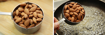 아몬드 2컵반, 설탕 3T, 꿀 1T, 버터 20g