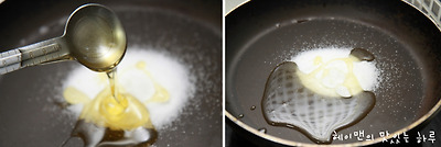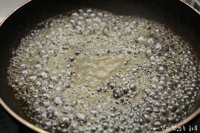 팬에 설탕3T와 꿀1T를 넣고 설탕을 녹여주세요~