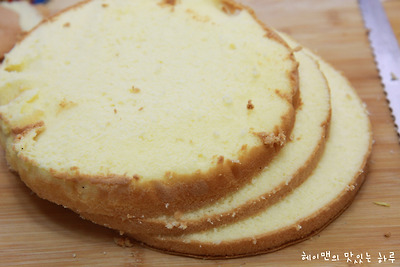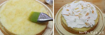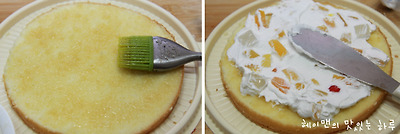 그리고 또 한장 케익시트를 올린 후 시럽 바르고