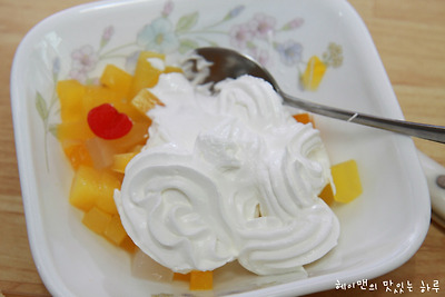 층층히 넣어줄 생크림엔 후루추칵테일 통조림을 함께 섞어주었습니다. ^^