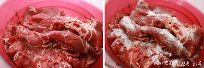설탕과 청주로 밑간을 해둔 소고기에 양념장을 부어주세요~