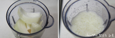 양파한개와 물한컵을 넣고 곱게 갈아주세요~