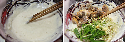 꼬막, 달래, 부침가루