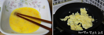 계란 2개는 볼에 풀어서 스크램블을 만든 뒤에