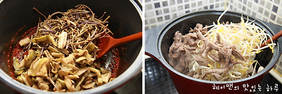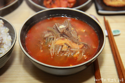 고기육수 넣고 푹 끓여서 만든 육개장이 더 맛있더라구요~