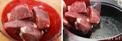 고기를 삶는 동안 야채를 손질해 주시면 됩니다. ^^