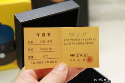 글씨가 새겨진 예쁜 순금뱃지가 들어 있습니다.