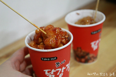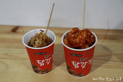 큰컵, 작은컵등~~ 컵에 담긴 닭강정이 많이 나간다고 하네요~