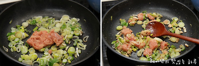 기름을 두르고 송송 썬 대파를 볶아주세요~