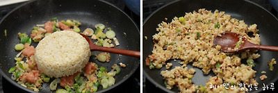 볶음밥을 할때는 즉석밥을 전자렌지에 데우지 않고